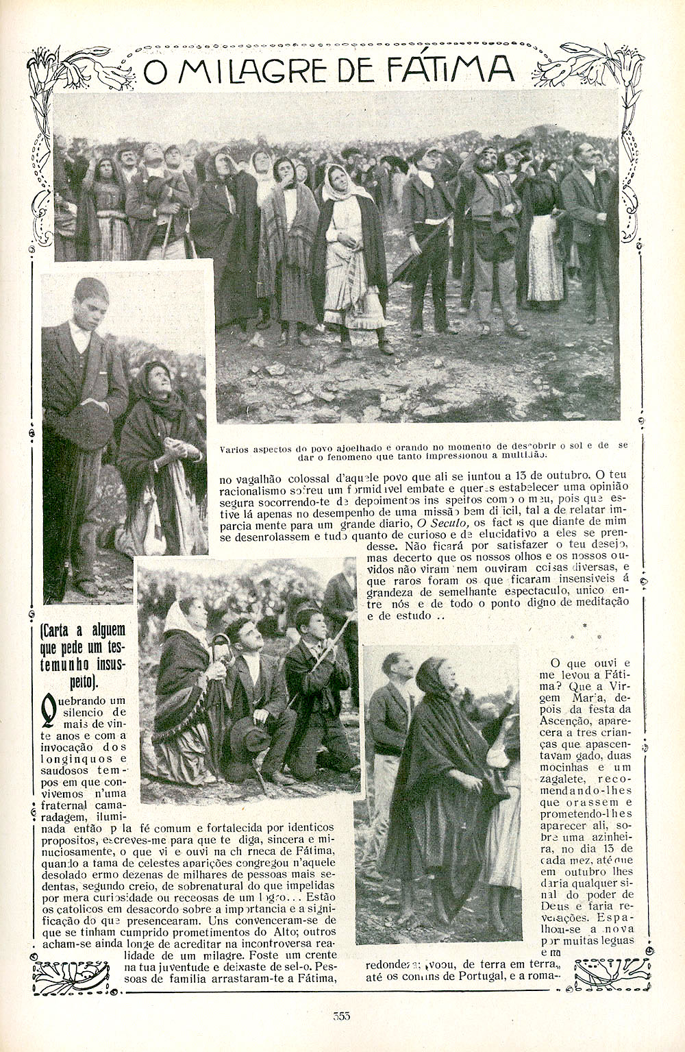 Miracles: The miracle of the sun. The prediction of a second war: "The war is going to end; but if people do not cease offending God, a worse one will break out during the pontificate of Pius XI."